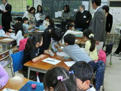 今日の5校時は、船橋希望学舎の合同研究会が本校で行われ、全学級(音楽、図工も含む)が公開授業を行いました。のぞみ学級では、日常行っている実践事例の紹介も行われ、今日は学舎全体の教員の授業力向上を目指した取り組みが行われました。子どもたちも日頃の成果を発揮し、とても楽しそうに、そして真剣に学ぶ姿がみられました。