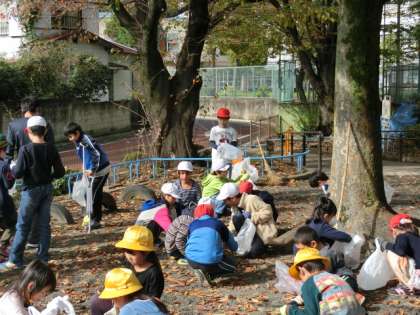 昨日の4校時、希望っ子班ごとに地域の美化清掃活動を行いました。今回は、落ち葉を拾うことが大きな仕事でした。とにかくたくさんの落ち葉が落ちていて、拾っても拾ってもなかなかなくなりませんでしたが、子どもたちは、にこにこしながら意欲的に活動していました。(258)