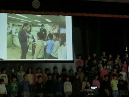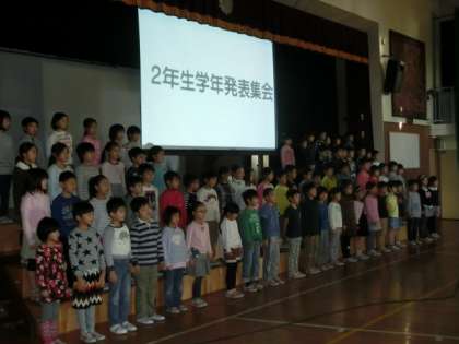 今日の朝の時間は、2年生が生活科の学習で行った、「まちのすてき」探しで学んだことを発表しました。全校児童の前で緊張していましたが、大きな声で行うことができました。見慣れている場所でも、それぞれの役割や頑張っていることを再確認することができました。(273)