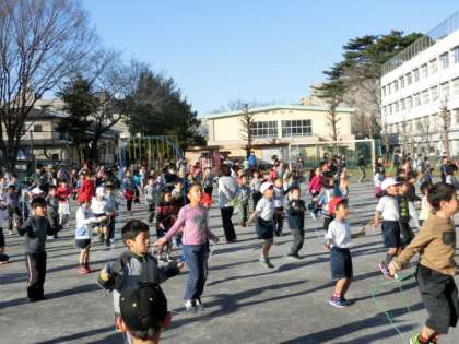 月曜日に降った雪も消え、今日の朝の時間は、スポーツタイムを行いました。寒さににも負けず、元気よく活動している姿がみられました。短縄が始まった頃は、上手にとぶことができなかった児童も、上達し、長い時間とぶことができるようになってきています。やはり、継続は力なりですね。(278)