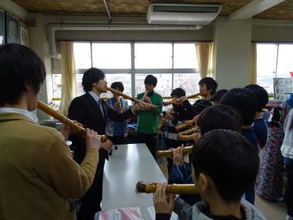 講師は、近隣にお住まいの富成清女先生(箏・三絃)、富緒清律先生(箏・三絃)、そして黒田鈴尊先生(尺八)。