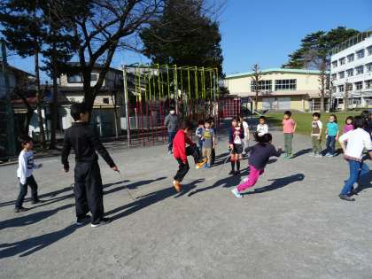 今年度最後のスポーツタイムは長縄跳び。