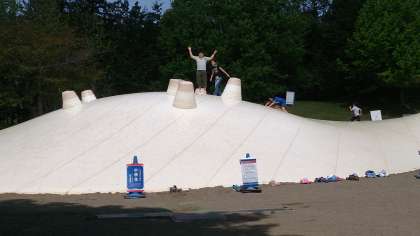 雲の海で遊んでいます。みんな跳びはねています。