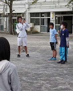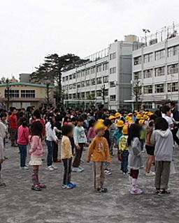 4月27日、希望っ子班ロング集会を行いました。この日が1年生から6年生までの学年がグループをつくり、1年間さまざまな活動をするための結成式です。最初は校庭に集まり、さあこれからゲーム・・・というところで雨が降り出し、大慌てで体育館に移動しました。