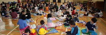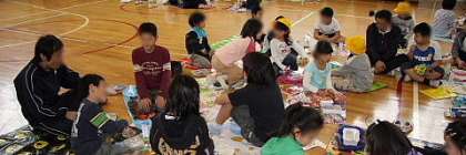 みんなで体育館に集まり、お弁当を食べました。はじめて一緒の班になるお友達をいて緊張気味の子もいましたが、高学年が上手に会話をリードして楽しくすごすことができました。