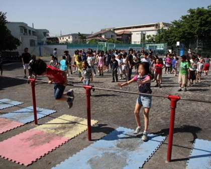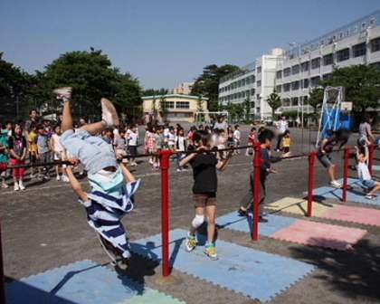 5月21日朝、鉄棒集会を行いました。全校児童が校庭に集まり、運動委員会児童の模範演技をみた後、それぞれの学年の課題(前回りや逆上がりなど)種目に従って鉄棒のリレーをしました。一定時間で何人その種目をできるかを競い合い、なんと1回目は1年生の勝利。それに奮起した5・6年生が2回目はがんばり、2回目の勝利はやはり実力のある6年生の勝利となりました。さすが最高学年です。