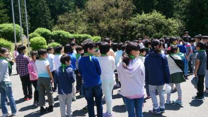 いっしょに宿泊する奥沢小学校と開室式を行いました。とても立派な態度でした。