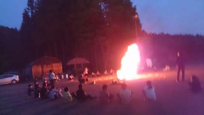 キャンプファイアが始まりました。すごく盛り上がっています。