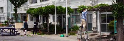 5月27日、学校主事が職員室前のフジ棚とブドウ棚の剪定作業をしました。ぐずつき気味の天気が多い今年、晴れた日は作業日として貴重です。ブドウの木には小さな「ブドウの赤ちゃん」が・・・この表現は通りかかった子どもがふと口にした言葉です。・・・実ったブドウは、エコ活動に協力してくれた子にわけます。