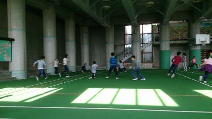 室内レク第2の遊びは、こおり鬼です。タフネス5年生です。