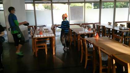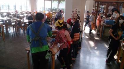 夕食の準備を食事係の児童が行ってくれています。テキパキと働いています。