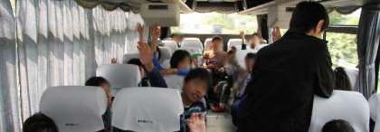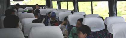 バス順調に進み、バスレクで楽しんでいます。ちょっと早いおやつで、アメをもらって、大喜び。