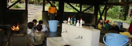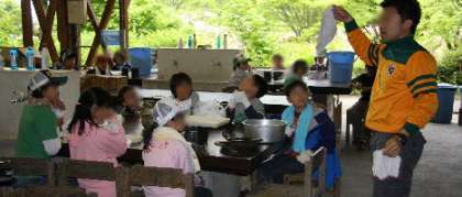 さあ、いよいよ飯ごう炊さんです。準備は補助員さんがしてくれました。調理や火のつけ方について説明を受けて、調理開始です。