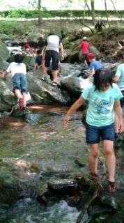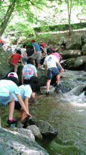 マスつかみどりの後は、近くの川で遊びます。い落ちたら大変だよ!慎重にね…