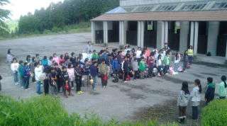 8時30分、池尻小学校と一緒に閉室式をしました。司会は、池尻小学校でした。この後、もう一度部屋に戻り、最後の片付けをして、荷物を持って集合です。