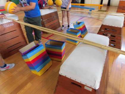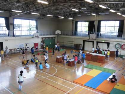 明日は待ちに待った「希望っ子まつり」です。子どもたちは楽しく準備をしています。体育館の様子です。