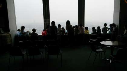 展望ラウンジに到着しました。雲っていますが、世田谷全体が見えます。