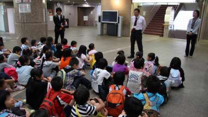 6月8日、4年生が教育センターに貸し切りバスで出かけて社会の郷土学習と理科の天文学習をしてきあした。区内の三宿小学校もいっしょにでしたので、教育センターのロビーに集まってあいさつをしてから、担当の先生のお話を伺いました。そのあと希望丘小学校は郷土資料室にむかい学習をしました。はじめに、資料室の使い方を説明してもらい、その後、自分のテーマに従って学習しました。
