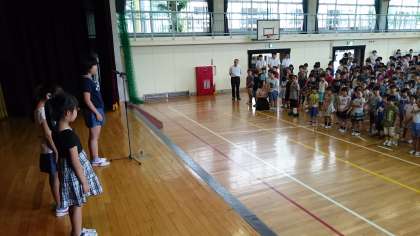 3年生と5年生の代表児童は、1学期にがんばったこと、夏休みや2学期に向けての決意を堂々と発表していました。