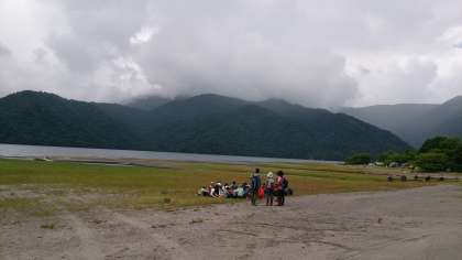 菖蒲ヶ浜に到着しました。中禅寺湖が広がっています。