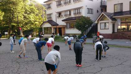 朝の体操です。みんな元気です。今日世田谷に帰ります。