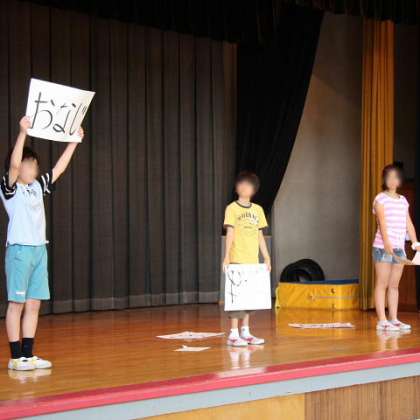 記念集会のためがんばった児童運営委員の6人です。本校は児童数が少ないので、このような時には少ない人数で何役もこなし、本当によく頑張ります。