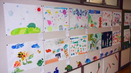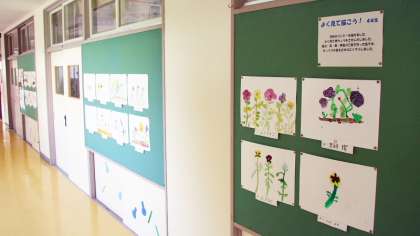 17日、今日から学校公開が始まりました。来校された際には、ぜひ校内の掲示物をご覧ください。各教室の中や廊下はもちろんのこと、特別教室の廊下や教室内、階段の踊り場付近にも様々な掲示をしています。下の写真は上2枚が図工室の廊下のミニ作品展のようす。下の1枚は、算数講師の先生が撮ったすてきな写真の数々です。このほかにも各学年で取り組んだ成果や、行事の写真なども貼ってあります。