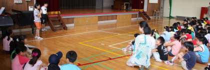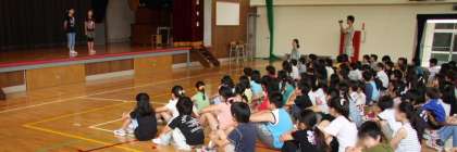 学校公開は2日目をむかえました。朝の集会は、明日の「希望っ子まつり」のお店を各学年が紹介する集会をしました。発表をする子は、昨日と今日の朝早くに集まって準備をしました。発表はお店の内容をわかりやすく、しかも興味をひくように工夫していました。もちろん原稿を見ないでしっかり発表できていました。