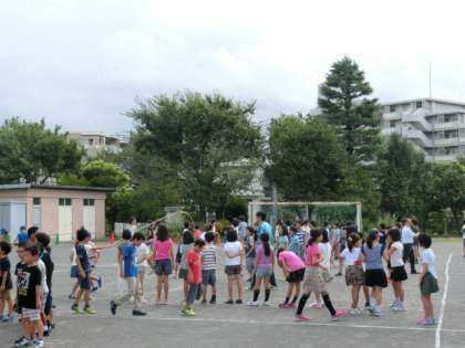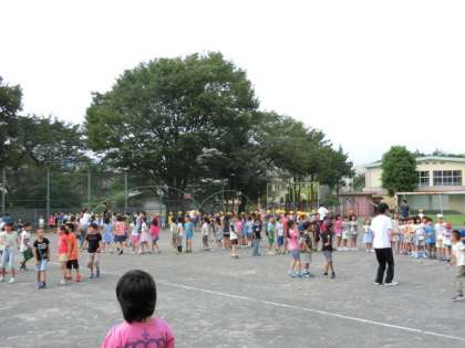 今日の朝の時間は、2学期初めてのスポーツタイムを行いました。長縄を行いました。