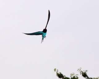 水泳シーズンになって気がつくのは、プールの上をツバメが飛び交うことです。ツバメのおなかにプールの青い色が映って鮮やかな色となります。どうやら水面に飛んでくる虫を狙っているようです。