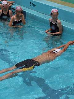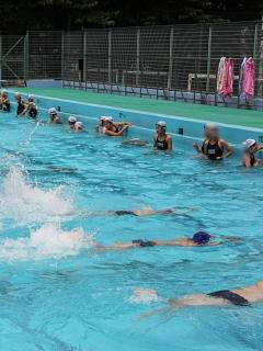 「蹴のび」では、プールの横方向、一回でいけた子がいて、みんなから拍手をもらっていました。56年ともなると、泳ぎ方がすばらしい子がいます。