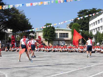 応援団を中心にエールの交換が行われました。そして全校競技大玉送りです。みんな真剣そのものです。