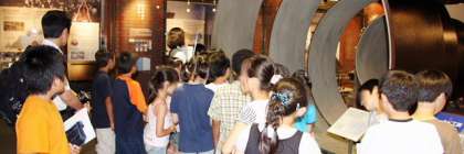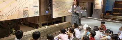 昼食の後、バスでこの日の2つめの見学地である本郷の「水道歴史館」に。ミーティングルームで東京の水道の歴史についてのビデオを見て、館内の展示施設に場所を移し、発掘された江戸時代の「木樋」(木でできた水道管)やわかりやすい模型や実物大の復元模型などを前にして、展示物について丁寧に説明をしていただきました。
