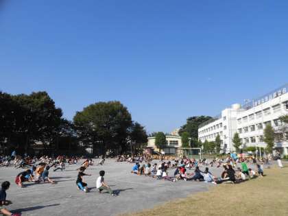 全クラスで長縄をやっています。しっかり準備体操をしてから練習しています。どのクラスも上達しています。子どもたちは元気に声をかけ、楽しく跳んでいます。