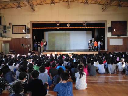 図書委員の人たちが音読を行いました。画像に合わせて、気持ちを込めて読みました。聞いている人たちも、真剣にそして楽しく聞くことができました。図書委員のみなさん、ありがとうございまいした。