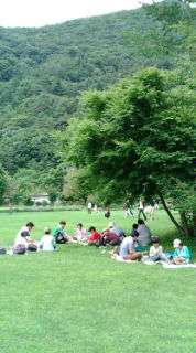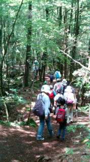 コウモリ穴から樹海の中をハイキングして、野鳥の森公園で昼食です。みんな元気です。