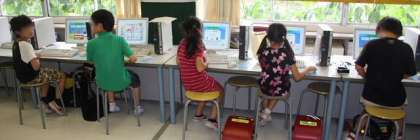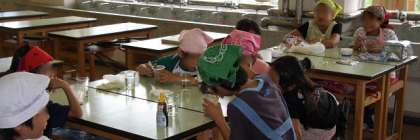 12日、6時間目は4・5・6年生が参加するクラブ活動の時間です。この日が1学期最後の活動でした。普段の授業とはちがい、4・5・6年生が一緒に力を合わせて活動する楽しさがあるようです。(写真上:球技クラブ・・・ワールドカップの余韻さめやらぬ今日、心配していた雨もやんで、力一杯のプレーが)(写真中:料理・手芸クラブ・・・今日はお楽しみの「パフェづくり」写真を撮りに行ったときは、もう食べ終わるところでした。満足そうな顔)(写真下:パソコンクラブ・・・タイピングの速さと正確さを診断するソフトに挑戦。やはり1位は担当の先生のようでした。)
