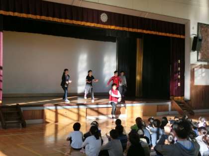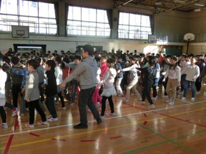 今日の朝の時間は、体育館で「楽しく遊ぼう集会」を行いました。今日は、6年生が社会科見学でいないので、5年生が中心となって行いました。「猛獣狩り」ゲームで、司会をする児童や説明をしてくれる児童がとても元気よく、そして楽しそうにやってくれたので、ゲームをしている子どもたちも楽しそうでした。5年生がとても頼もしく思えました。(293)