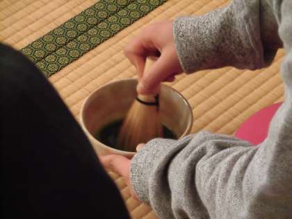 静かな雰囲気で、一つ一つの動きを大切にお茶を点てています。和の心を感じる貴重な時間になりました。