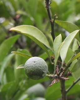 学校の校庭で育っている果実を紹介します。左側の写真が「夏ミカン」右が「姫リンゴ」です。順調に育っています。