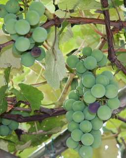 左の写真が「カキ」、右が「ブドウ」です。今年はブドウの葉がずいぶん虫に食われて、生育状態がよくないので心配です。さてこの果実、学校のどこになっているか知っていますか。収穫の時期になったら、エコに協力してくれた子どもたちに持ち帰ってもらいますから楽しみにしていてください。