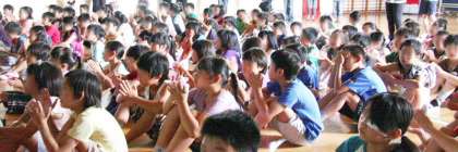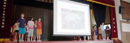 16日朝は、体育館で5年生の発表集会を行いました。6月はじめに行った川場移動教室の報告です。この日の体育館は朝から照りつける真夏のような日差しで気温が高くなってしましました。それでもみんなより朝早く集まった5年生が、舞台真ん中のスクリーンに映し出される移動教室のようすを、交代で説明しました。マイクを使わず、原稿も読まずに大きな声で発表するのは希望丘小のよいところです。5年生のがんばりに、暑い中でも、子どもたちは集中して聞いて、最後は大きな拍手を5年生に送りました。