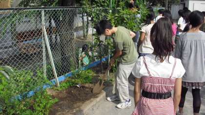 20日午後、昨年度の卒業生が学校に訪れ、卒業アルバムを受け取り、記念植樹をしました。中学校1年生になって4ヶ月。しっかり大人っぽくなって、元気な顔を見せてくれました。