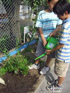 担任が現在産休中で学校にいないため、昨年度卒業生の保護者の方が今日のお世話をしてくださいました。ありがとうございました。写真は記念植樹をする子どもたちのようすです。ブルーべーリーの苗を2本植樹しました。大きく育って実をならせる日が楽しみですね。