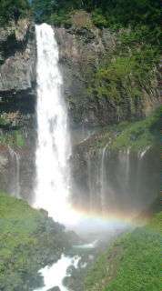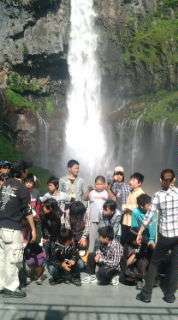 目の前に華厳滝が…感動です。記念撮影をしました。