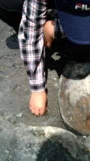 湯本源泉で10円玉を!興味津々!!
