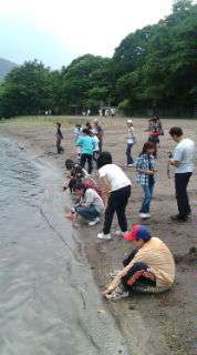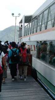 菖蒲が浜到着。砂浜で遊んだ後、桟橋から船に乗りました。