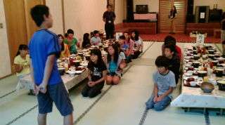 宿での最後の食事です。朝早くから準備してくれた、皆さんに感謝していただきます。食事ごとにあいさつ当番が頑張りました。