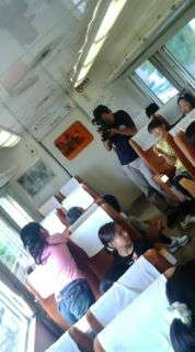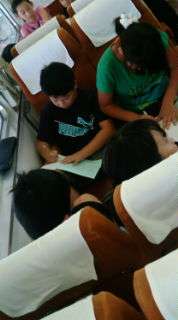 電車が出発。初めに2学期最初の学校通信に掲載する作文を書きました。合格するとおやつがもらえます。みんな頑張りました。
