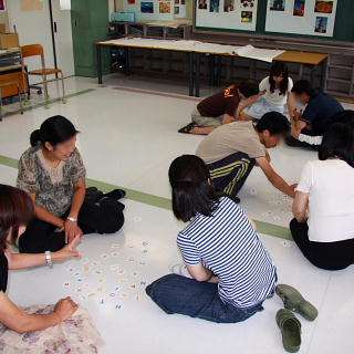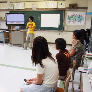 29日(木)、日光林間学園が無事に終わり一段落というところですが、夏休み水泳指導は続いています。ところが、今日は朝から断続的に雨模様の天気になり、初めて水泳指導が中止になりました。気温はわりあいに高いものの、時折激しく降る雨と強風で、実施は無理でした。そんな1日でしたが、午後からは教員の研修会を行いました。外国語(英語)活動の研修です。4階の学習室(英語教室)に移設した大型モニターテレビを使用したり、英語によるゲームをしたり、来年度本格実施になる5・6年生の外国語活動に備える研修です。ただし、本校では5・6年生が先取りで年間35時間実施しています。講師はその5・6年担任です。明日も行うことになっています。